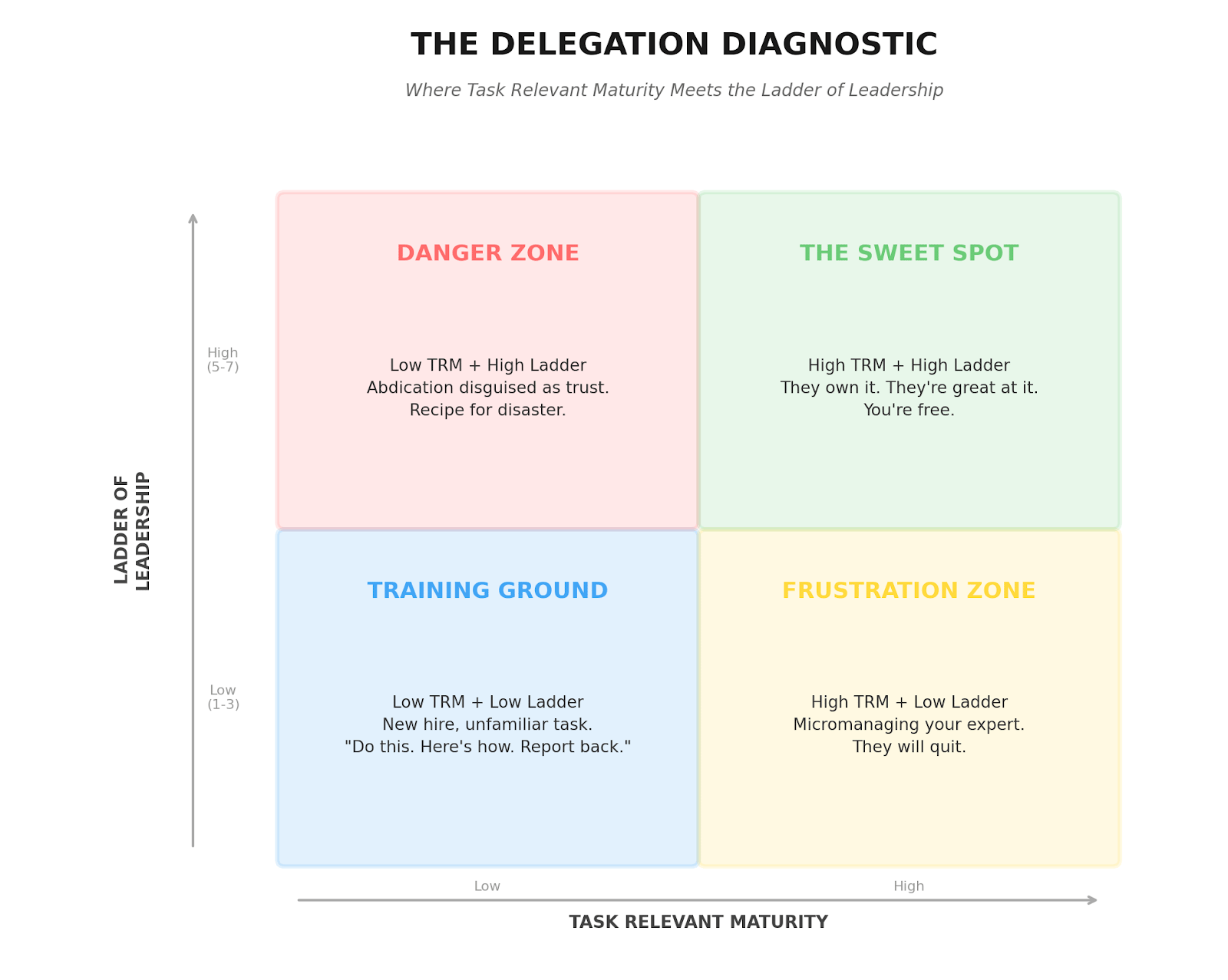 🟢 SWEET SPOT (High TRM + High Ladder) This is the quadrant you're trying to move everyone into, task by task. Next Time You Assign A Task